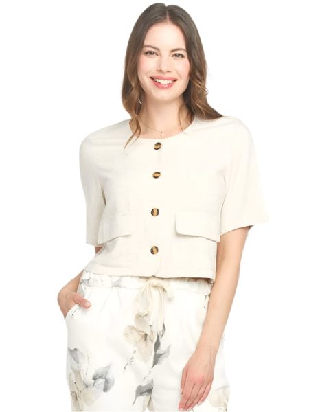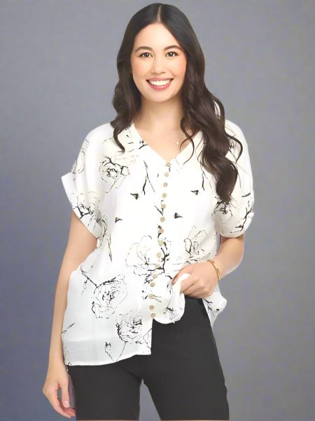 $115.00This Papillion button front blouse is crafted from a lightweight crinkle fabric and adorned with a beautiful floral print. The short sleeves provide a breezy and comfortable fit, making it perfect for any occasion. With its easy-to-wear style and elegant design, this blouse is a must-have addition to any wardrobe.