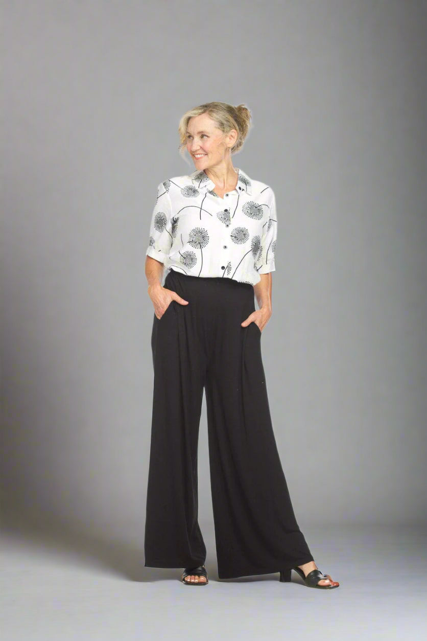 Papillon Short Sleeve Cotton Blend Dandelion Print Button Front Blouse – 18087